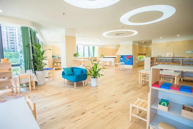 蒙特梭利“童年之秘”幼兒園,不僅創設了與幼兒教育和發展相適應的和諧環境,還是國內第一家采用“健康五恒系統”—“恒溫、恒濕、恒氧、恒靜、恒潔”的高端國際幼兒園,旨在為孩子帶來健康快樂的成長體驗。