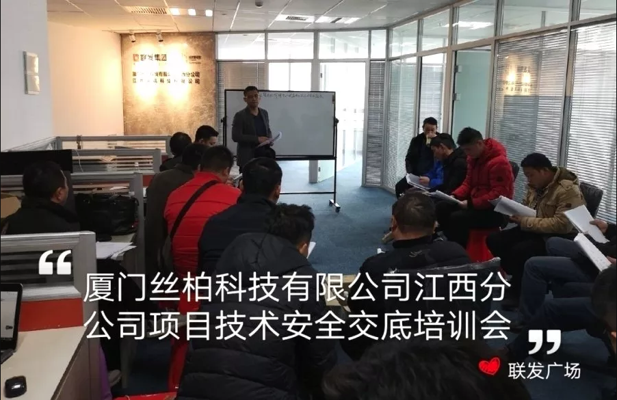 2月25日上午,絲柏科技江西分公司副總董秋彬、區域副總監楊狄鴻、技術總負責人韓飛、工程項目經理王明君、項目安全工程師胡松以及施工人員代表在聯發廣場進行了施工安全技術交底環節。